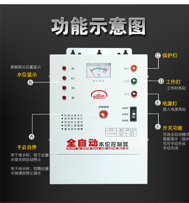 Water tower water float level switch three-phase 7 5KW water pump intelligent automatic water level controller 380V