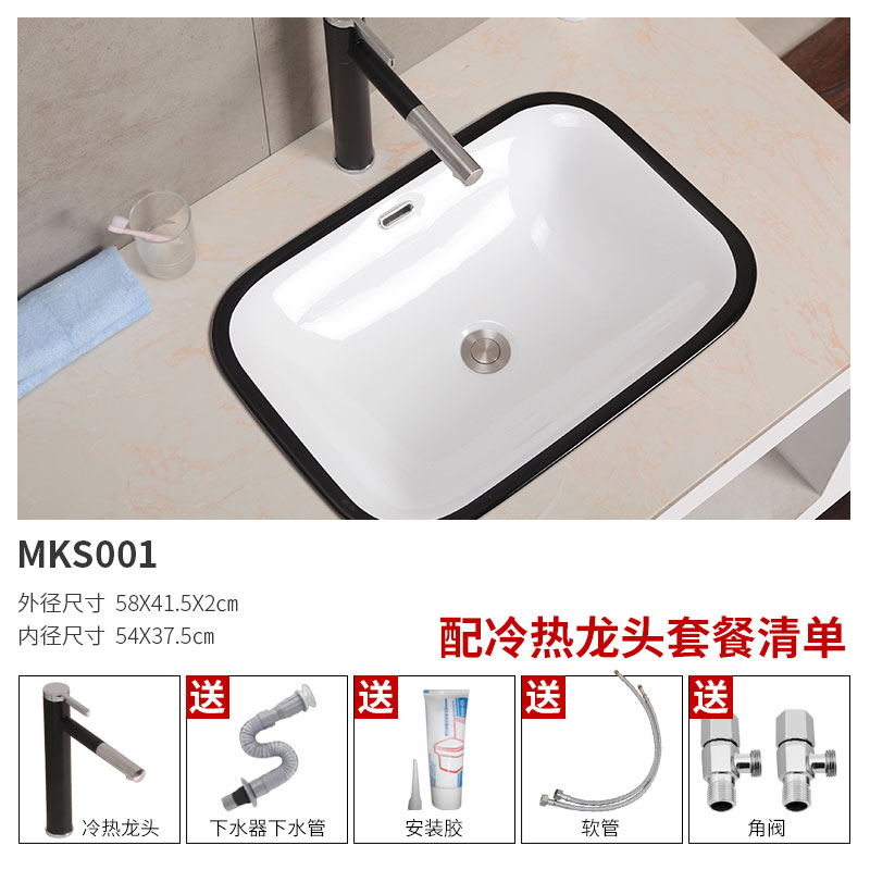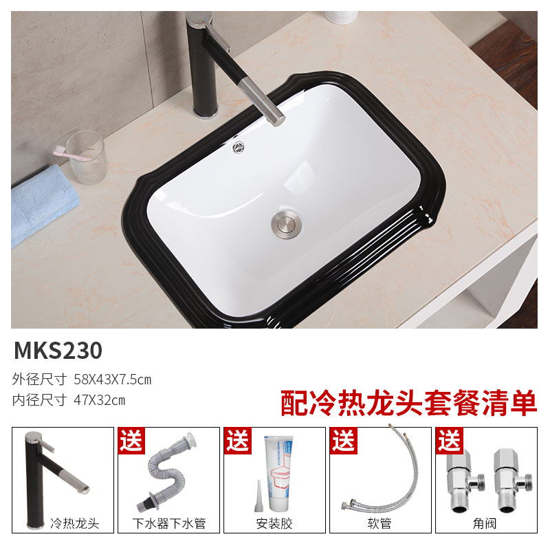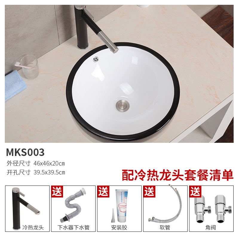 Taichung basin Semi-embedded rectangular powder room Household round simple black and white wash basin Table basin Wash basin