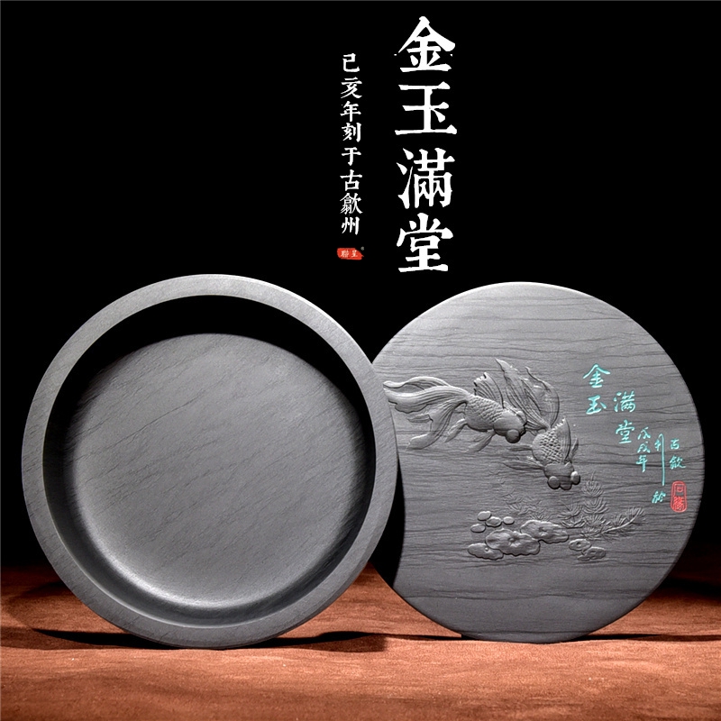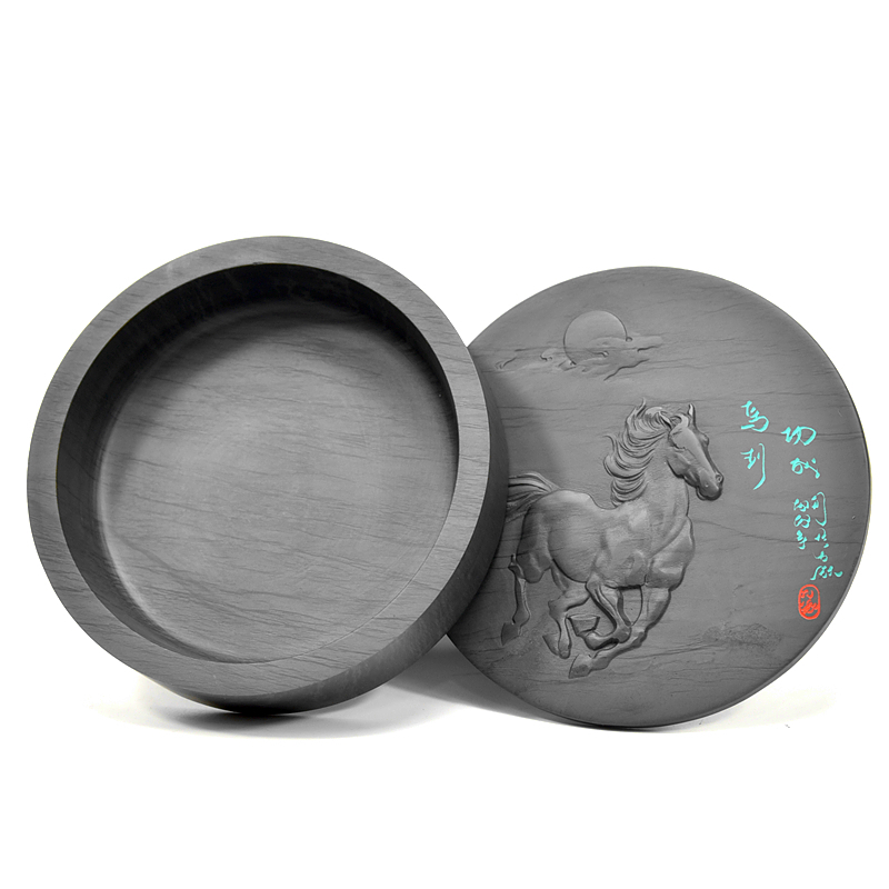 National Non-suicide 5 inch with lid Ink Stone Ink to successful natural original graphite strips Brush Calligraphy Suit Students Beginner of Anhui Huangshan Ink Stone End Ink Stone End Ink-stone Old Pit Storage Ink-ink Room Four Treasure