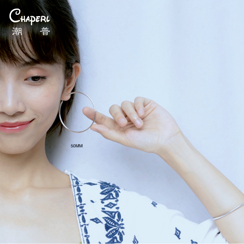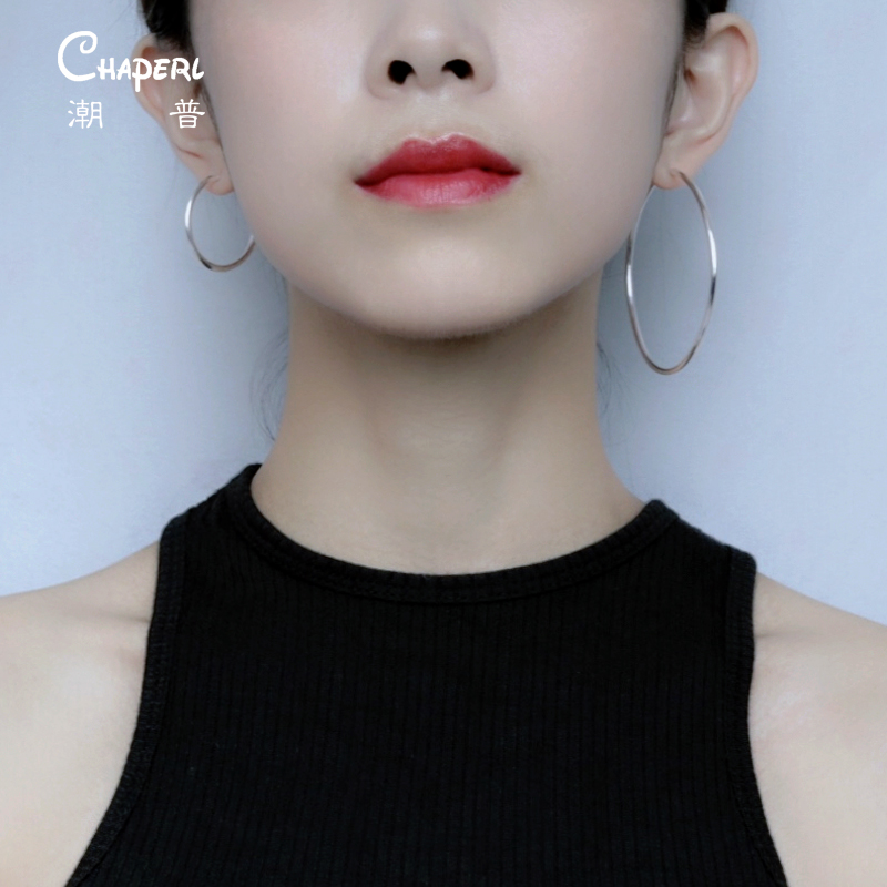 925 sterling silver circle large earrings women's ring 2021 new fashion simple personality thin face net red circle ear needle