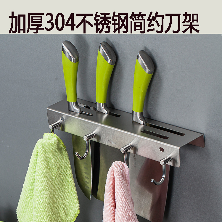 Thickened 304 stainless steel knife holder perforated nail-free kitchen wall-mounted knife cutting board pot shovel storage hook