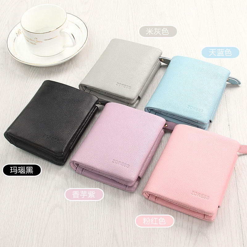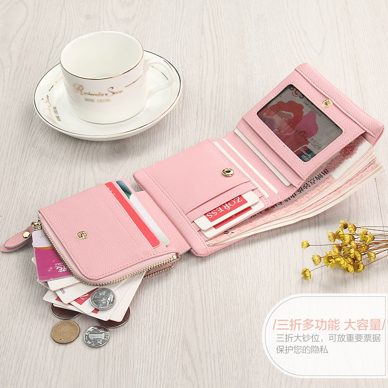 Wallet women's short Korean zipper leather three folding large capacity multi-card wallet coin purse small fresh wallet