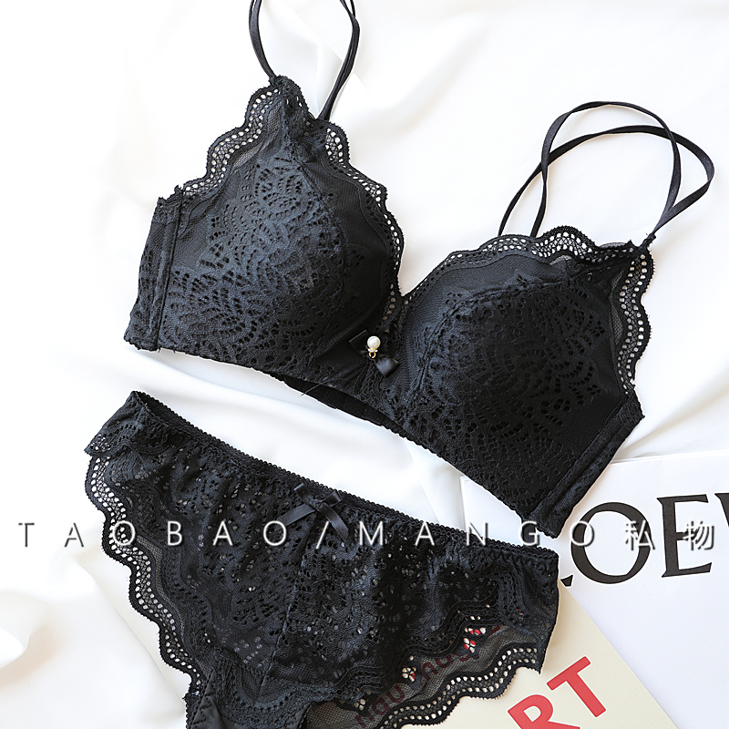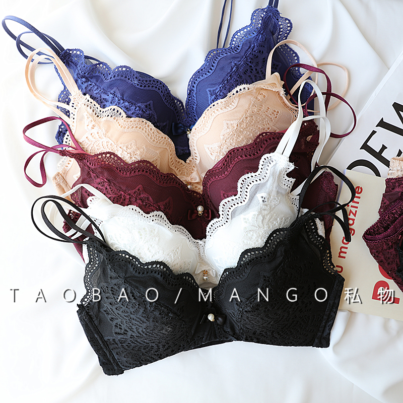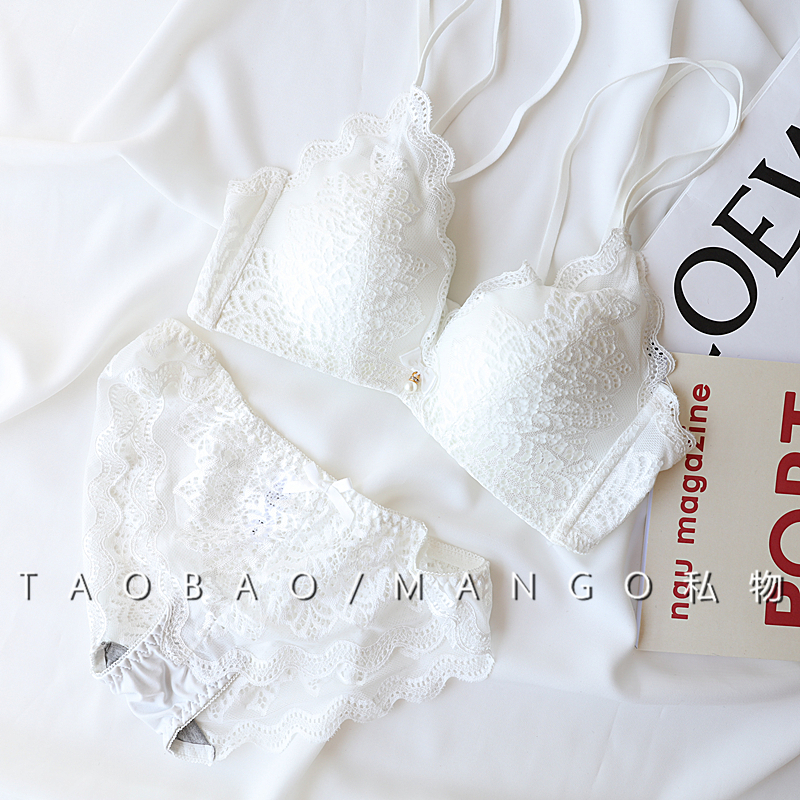 Japanese thin double shoulder strap Medium thin rimless comfort adjustable white underwear Small chest deep V gathered bra set