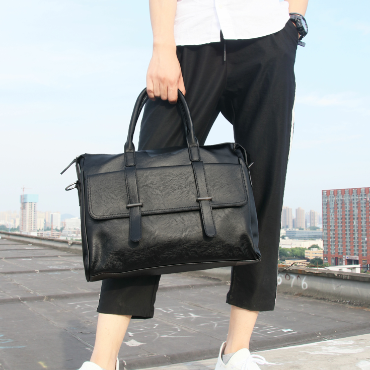 Hong Kong's new men's leather handbag Business Inlan travel bag computer briefcase single shoulder inclined satchel bag