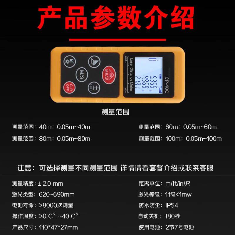 CP40 meters outdoor laser rangefinder high-precision infrared outdoor distance handheld measuring room measuring electronic ruler