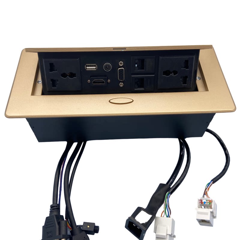 Multimedia power supply VGA network port 3 5 audio HDMI welding-free straight plug pop-up black silver gold desktop socket