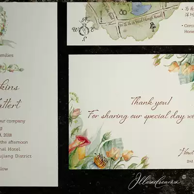 Advanced wedding invitation custom hand-painted illustration wedding invitation Mori custom-made European invitation letter invitation Green