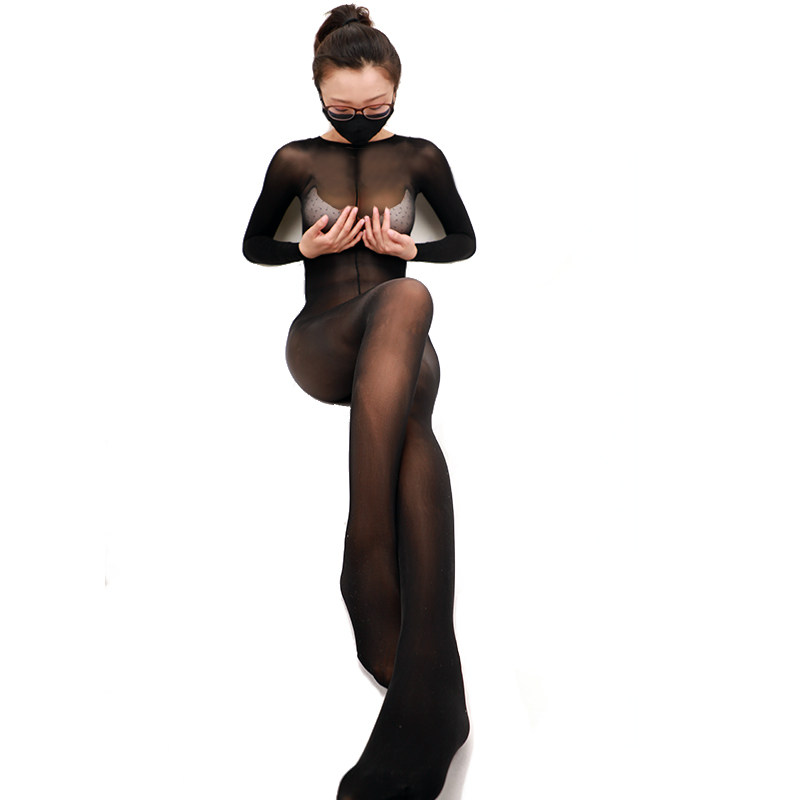 2 pieces 912 pin 8D high density elastic black oil shiny single side plus crotch stocking oiled silk stocking