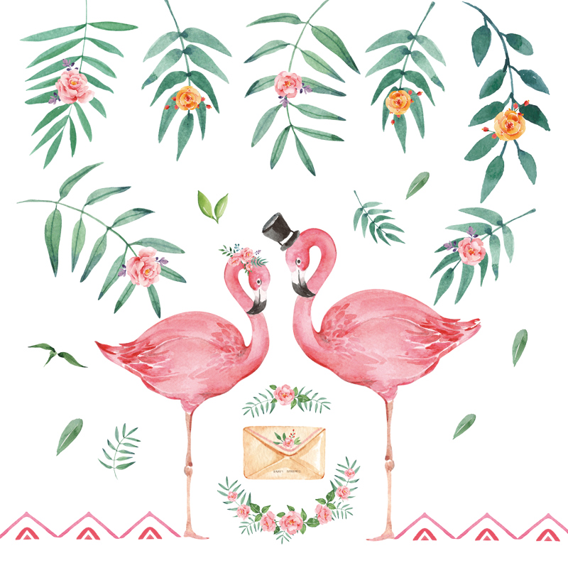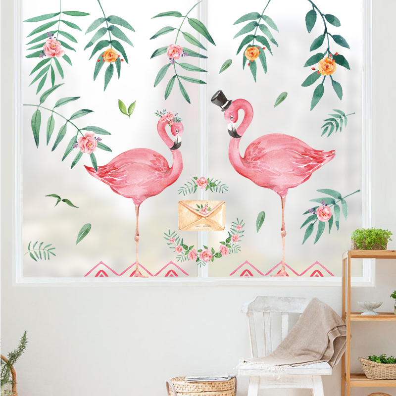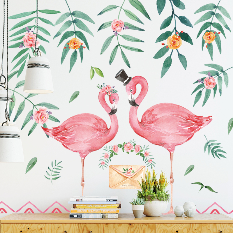 Wall stickers flamingo couple Nordic leaf plants living room bedroom porch corridor wallpaper waterproof decorative painting stickers