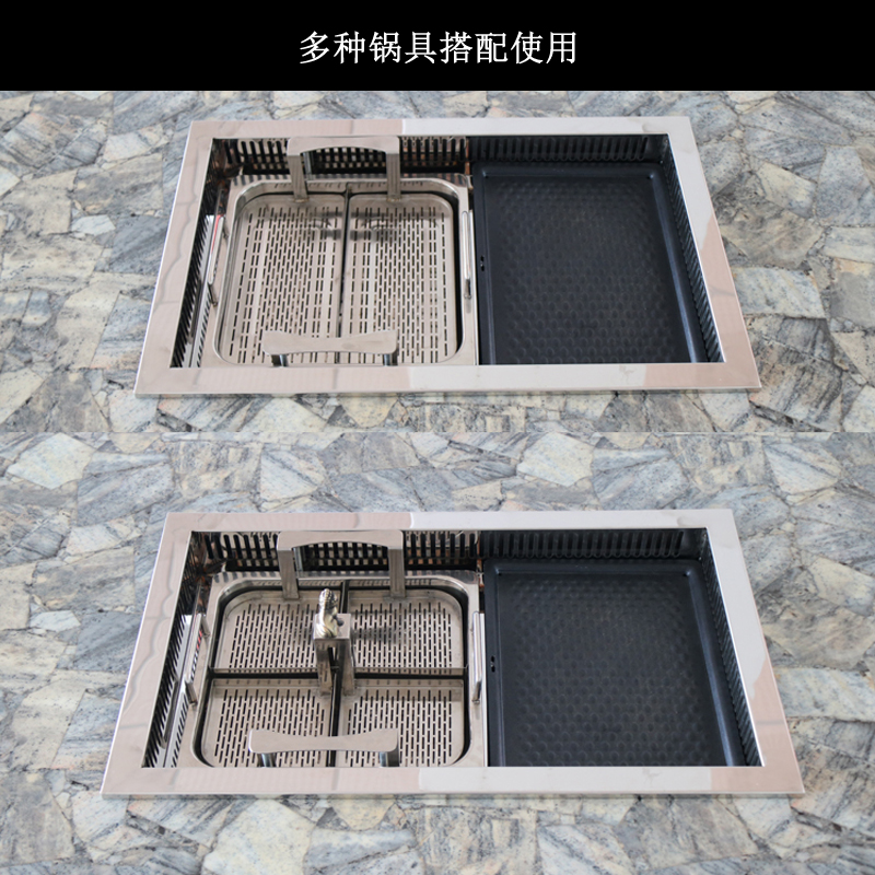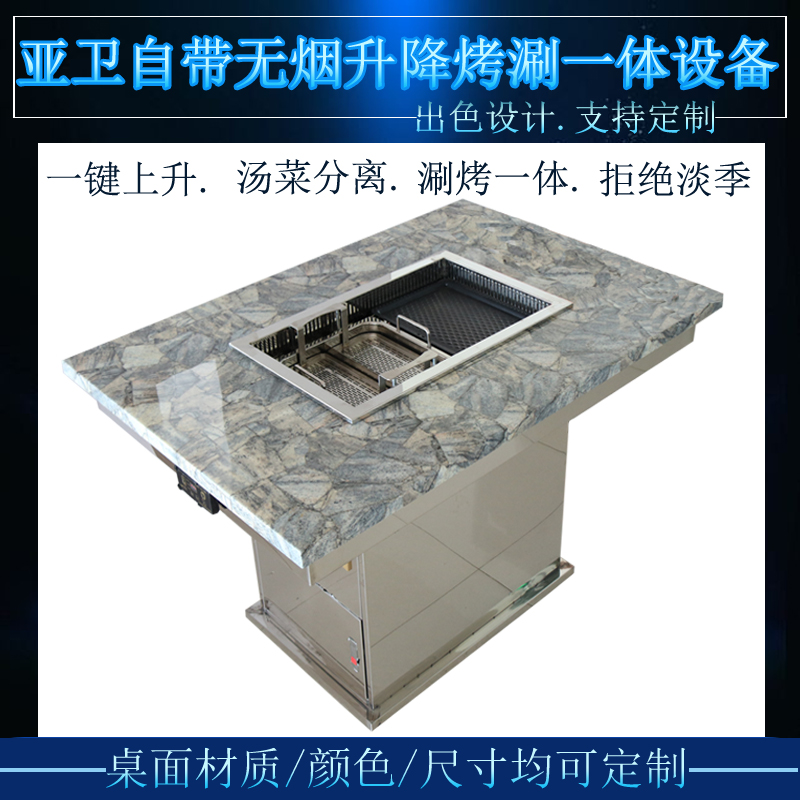 Sub-Wei's own smoke exhaust purifying and baking and lifting hot pot table fire pot shop smoke-free lifting hot pot barbecue integrated equipment