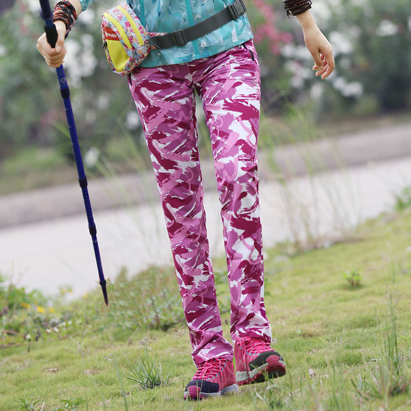 Outdoor camouflage quick-drying pants women's slim fit and thin elastic thin section mountaineering hiking sports sweat-absorbing breathable quick-drying pants summer