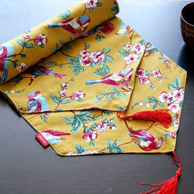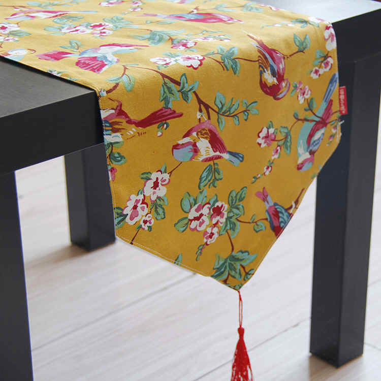 Double-layer flower and bird cotton and linen table, tea table, table flag, ethnic style, fabric cover, B&B, inn, bed flag, tail towel pad customization