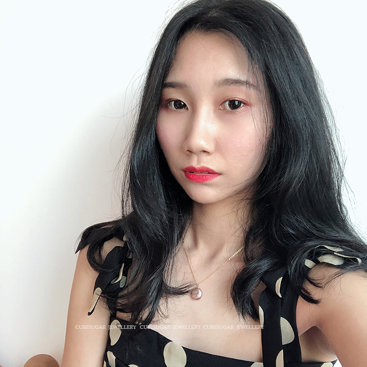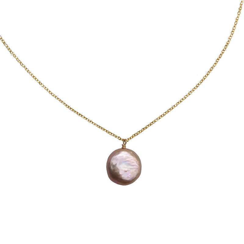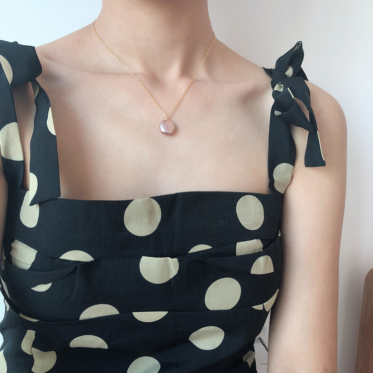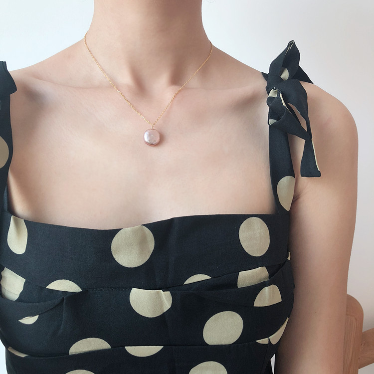 Natural Shine Sensation USA 14k BAG GOLD NATURAL BAROQUE BUTTON Pearl Necklace Lock Bone Chain