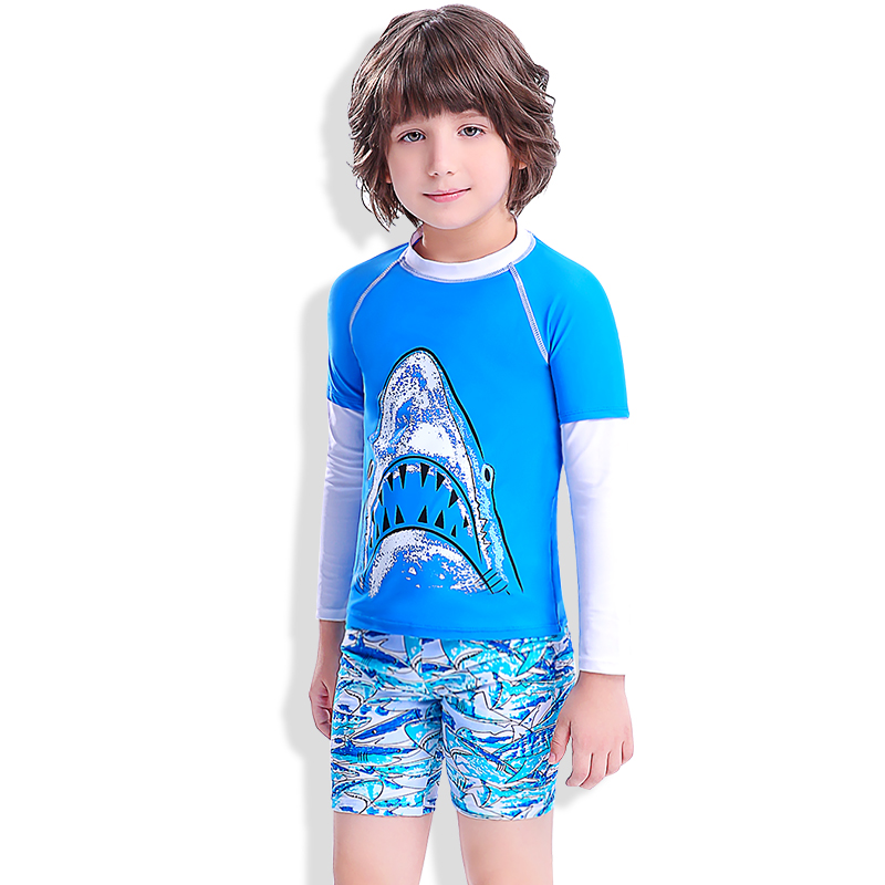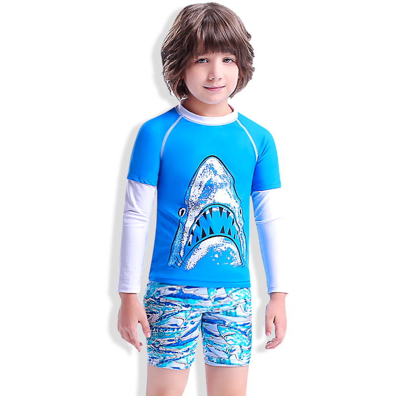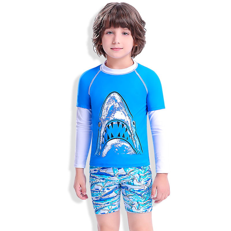 Boy UPF50 swimsuit suit two-piece long sleeve swimming shark baby boy student spa warm swimsuit