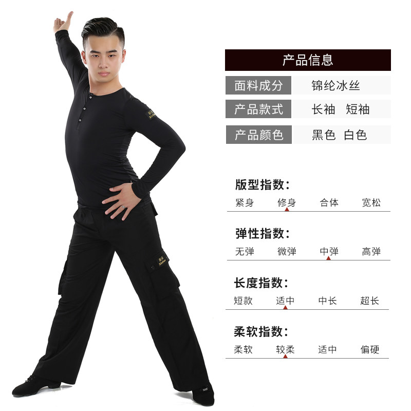 Latin dance blouses men's adult short sleeve summer new T-shirt Morden ballroom national standard dance performance Dancing Costume