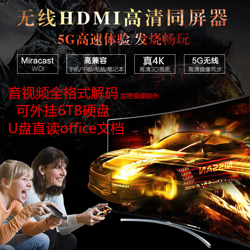 4K high-definition WiFi wireless HDMI same screen suitable for Apple Android mobile phone computer connected TV projection throw screen