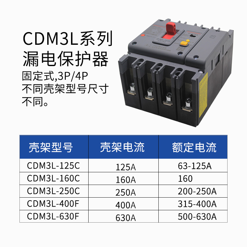 Dresi three-phase four-wire air switch with earth leakage protector plastic shell CDM3L160A250A400A