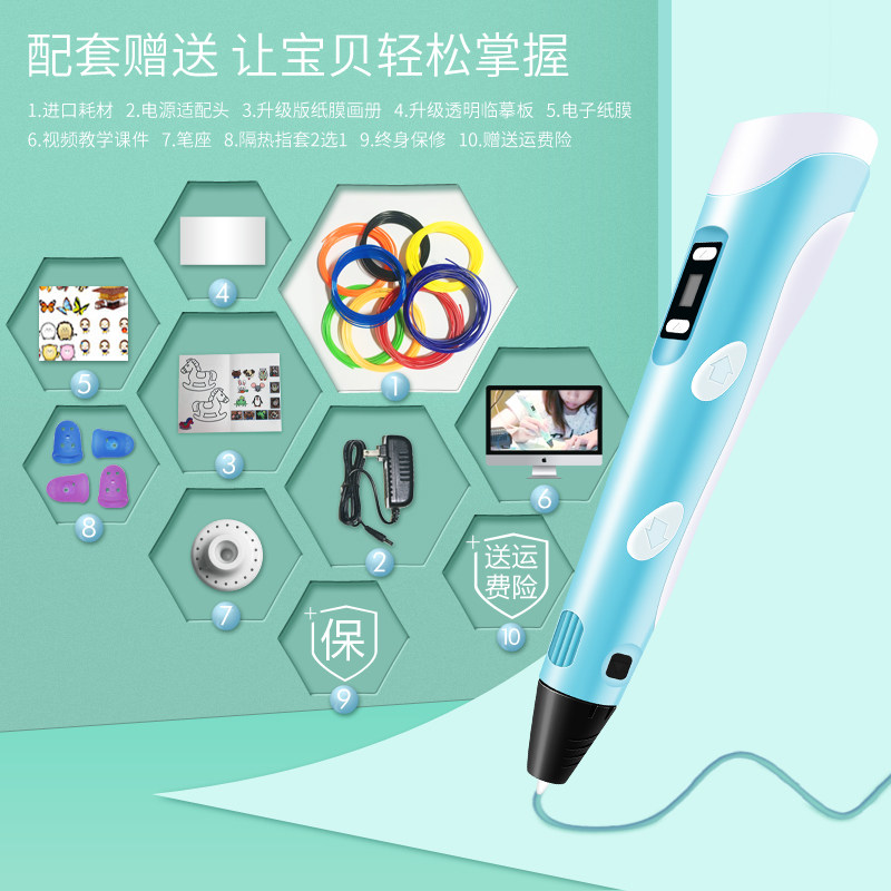 Original new students 3D printing pen shake sound temperature intelligent graffiti pen low three-dimensional painting brush charging three d creative gifts children's and women's birthday gifts