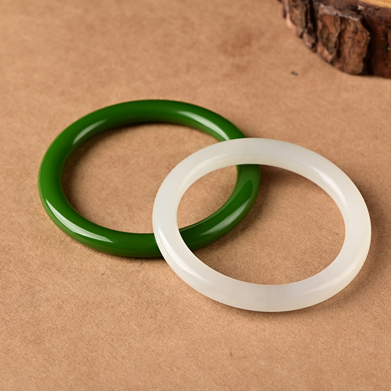 Xinjiang Hetian Jade sheep fat grade white jade bracelet Jade bracelet Retro round bracelet Girl thin bracelet