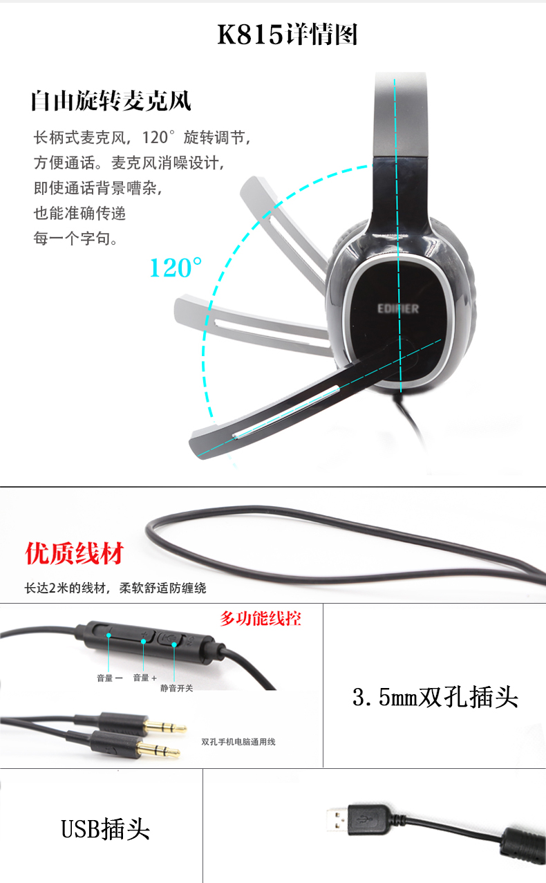EDIFIER Rambler USB K815 double hole version desktop computer headset Net class learning headset