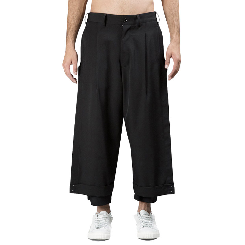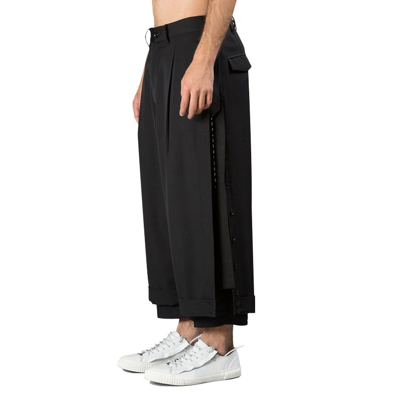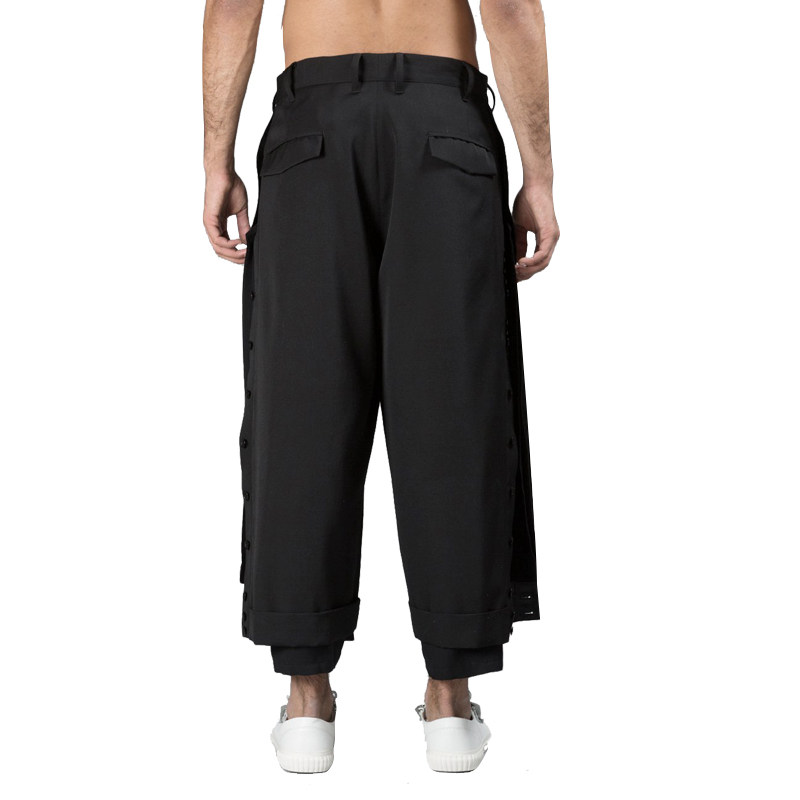 GAOSTUDIOS cropped wide-leg pants three layers deconstructed irregular row of buttoned trousers designer niche brand men