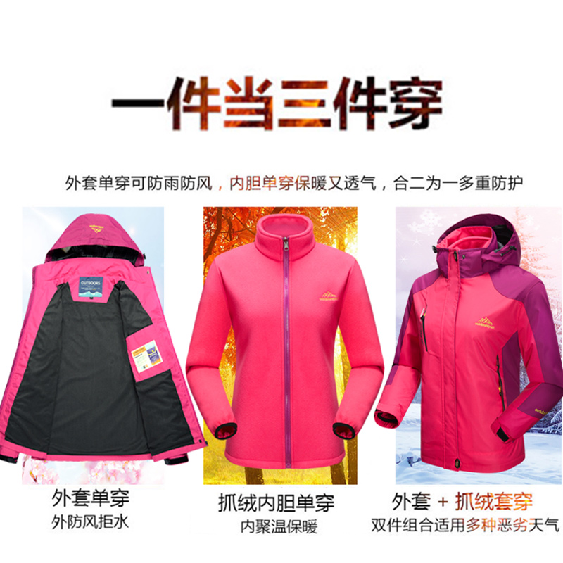 Three-in-one assault clothing for women in autumn and winter men's windproof and waterproof detachable two-piece outdoor plus velvet padded mountaineering clothing