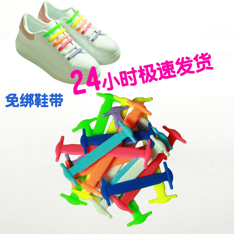 Silicone elastic lazy shoelaces for men and women creative free tie-free all-match personality color flat black and white shoelace buckle