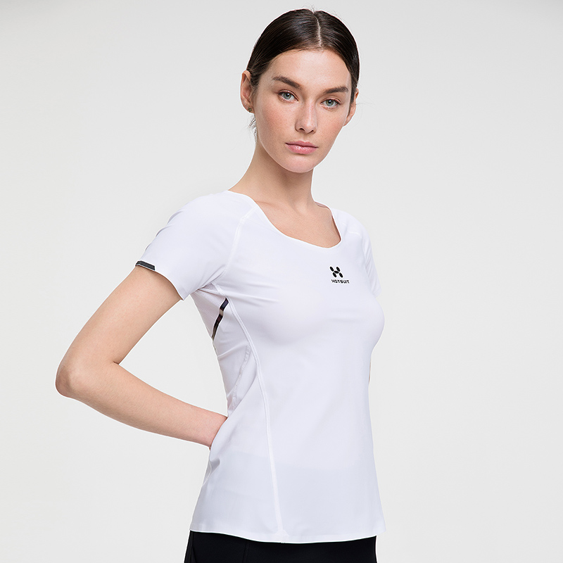 Rear Show HOTSUIT casual sports blouses woman spring summer fitness elastic breathable short sleeve t-shirt woman for body speed dry clothes