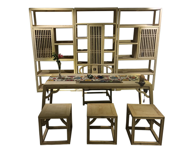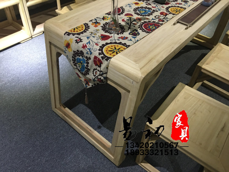 Chinese-style all-solid wood desk and chair combination simple ash painting case calligraphy table Zen Kung Fu tea table wooden stool