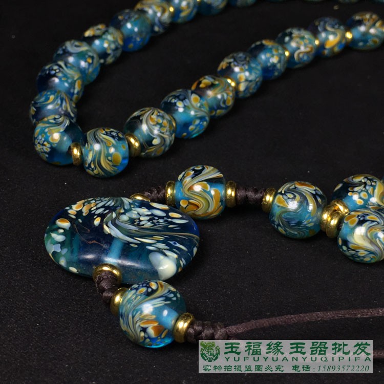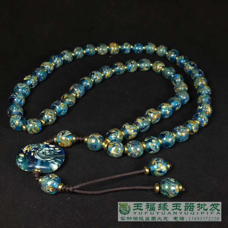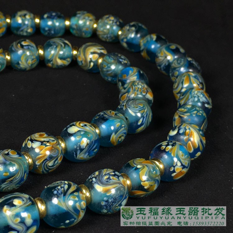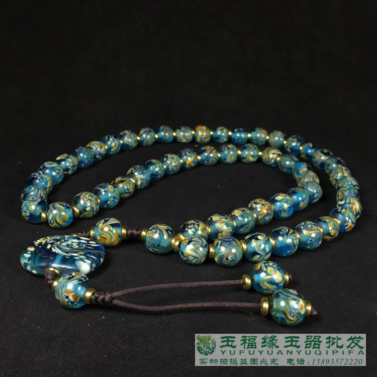 Ancient Miscellaneous Gorgeous Return Old glass Multicolor Painting Order Buddhist Pearl Pearl Prescription Blue Fengru Pearl String