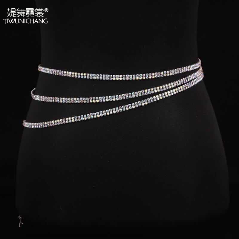 Clothes new belly dance waist chain Navel chain extended color diamond sailor dance diamond chain beginner crystal belt sexy