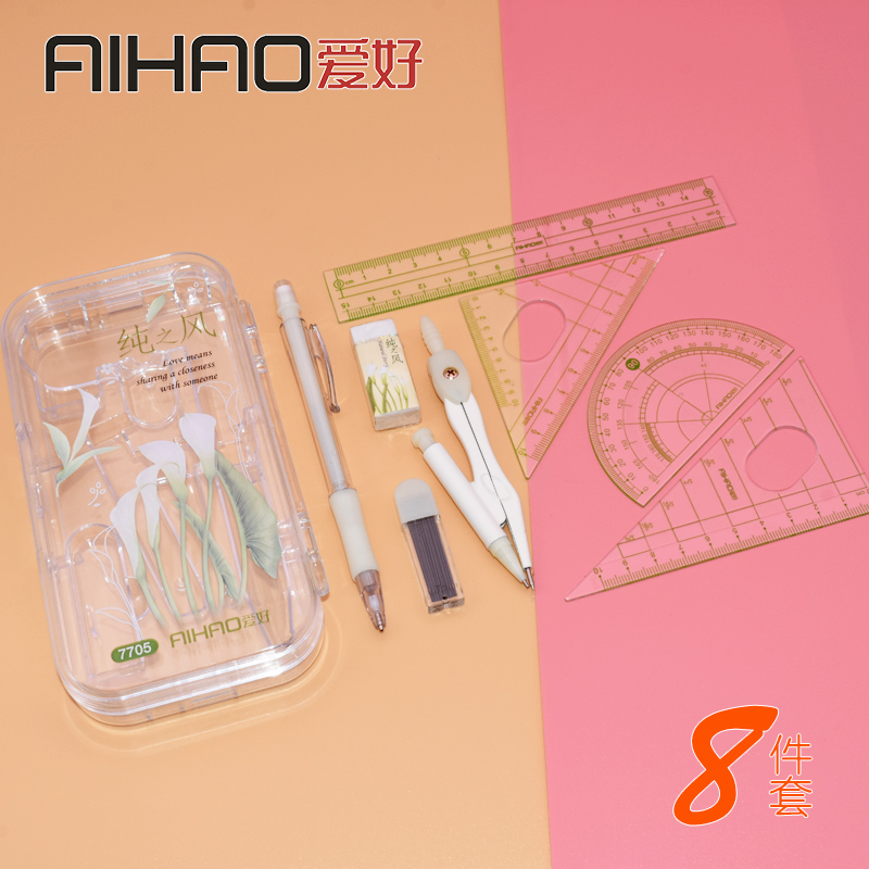 Hobby 8 pieces of sets of compasses suit students with stainless steel metal large compasses ruler sleeves junior high school multifunction sleeve ruler professional mechanical drawing measuring tool cute student stationery