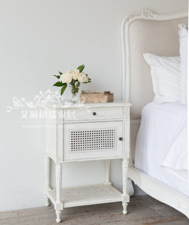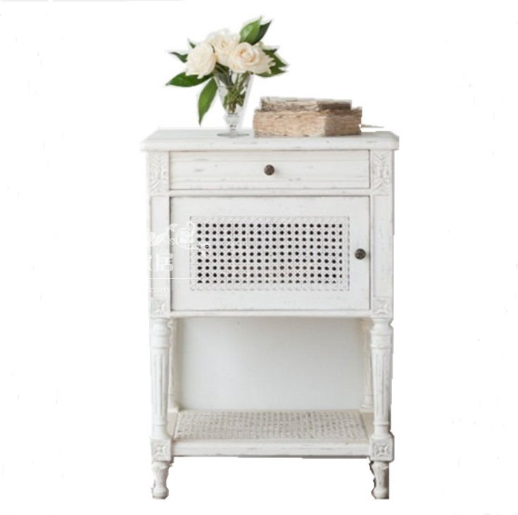 French log made old wooden carving bedside cabinet of American Country Virgin Bed Cabinet