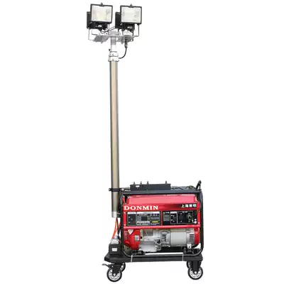 With 2KW generator 3 sections of lifting and shrinking light pole 4*500w halogen lamp with 2KW generator 3 sections of lifting and shrinking light pole 4*50w LED lamp with 5KW generator