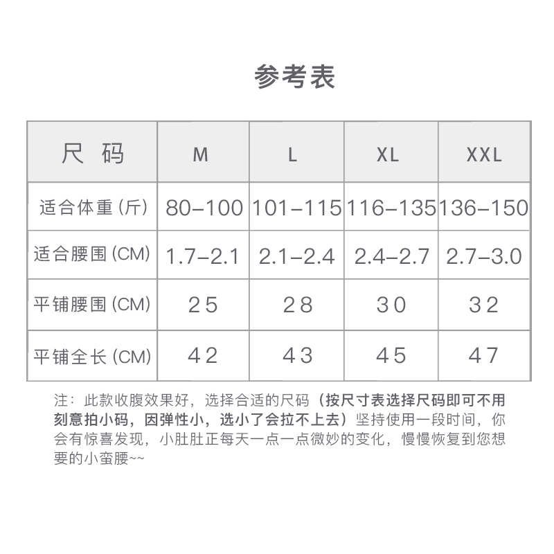 M (recommended 80-100 catty) L (recommended 101-115 catty) XL (recommended 116-135 catty) XXL (recommended 136-150 catties)