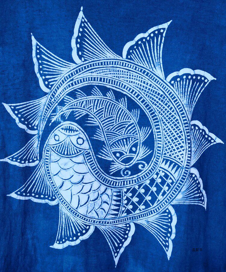 (Blue Indigo) Batik T-shirt custom fish pattern pure handmade plant blue dyeing intangible cultural heritage crafts Guizhou gifts custom