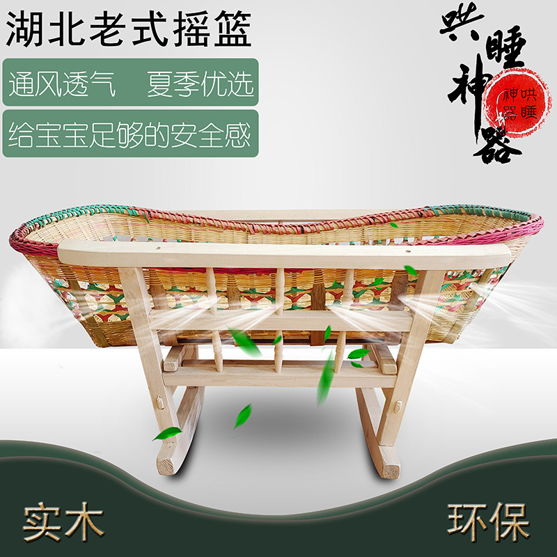 Hubei old-fashioned cradle traditional old-fashioned cradle all solid wood environmental protection paintless crib bb handmade bamboo woven cradle bed