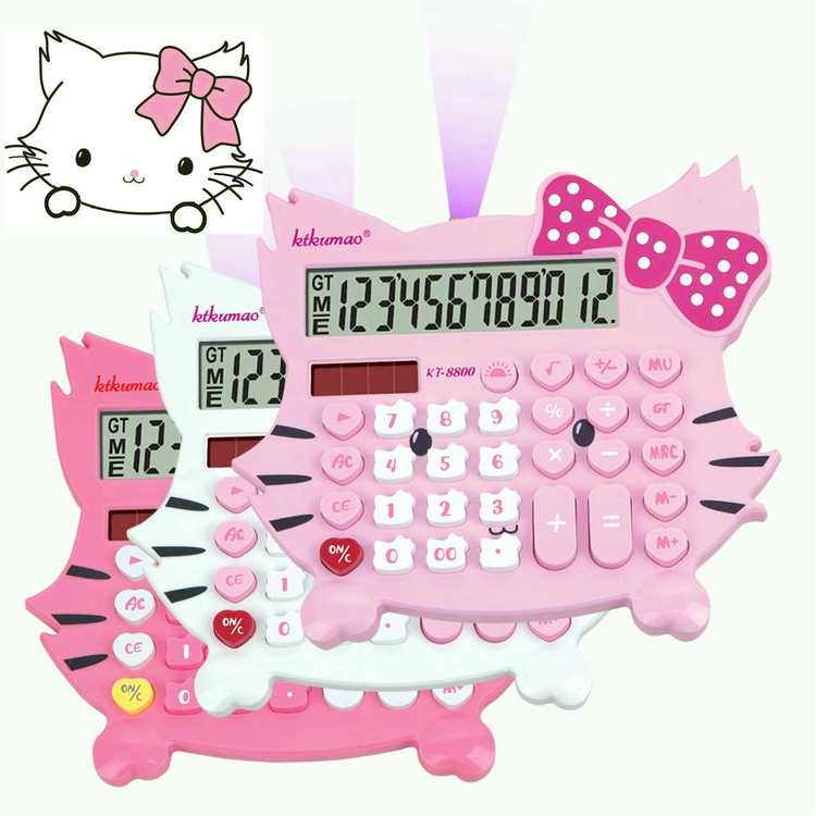 kitty calculator solar multi-function computer voice type 12-bit financial accounting cartoon cute pink