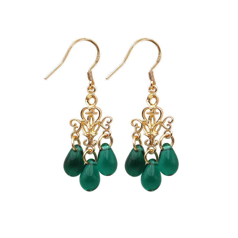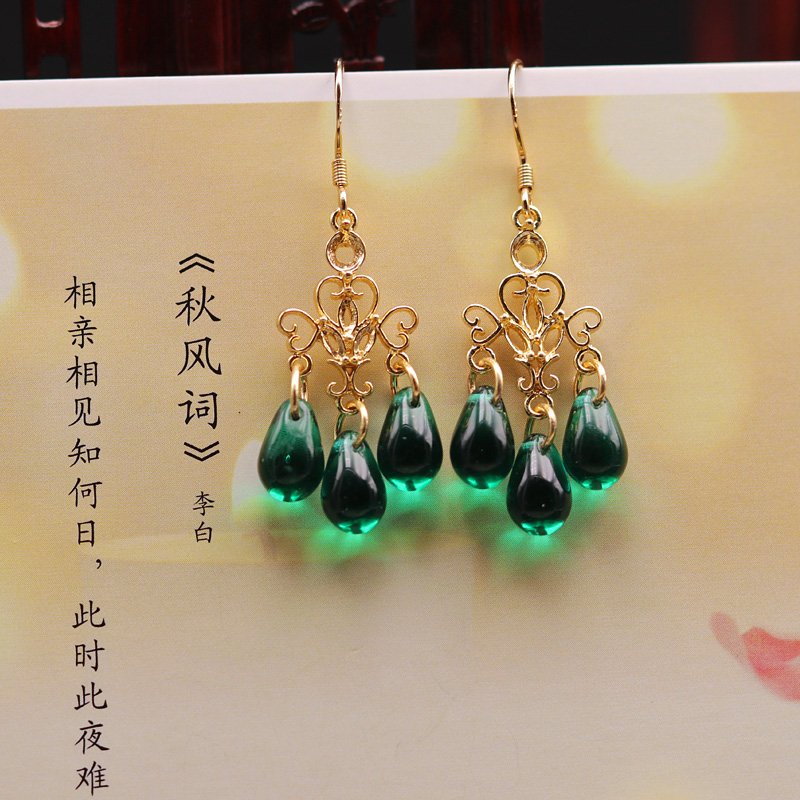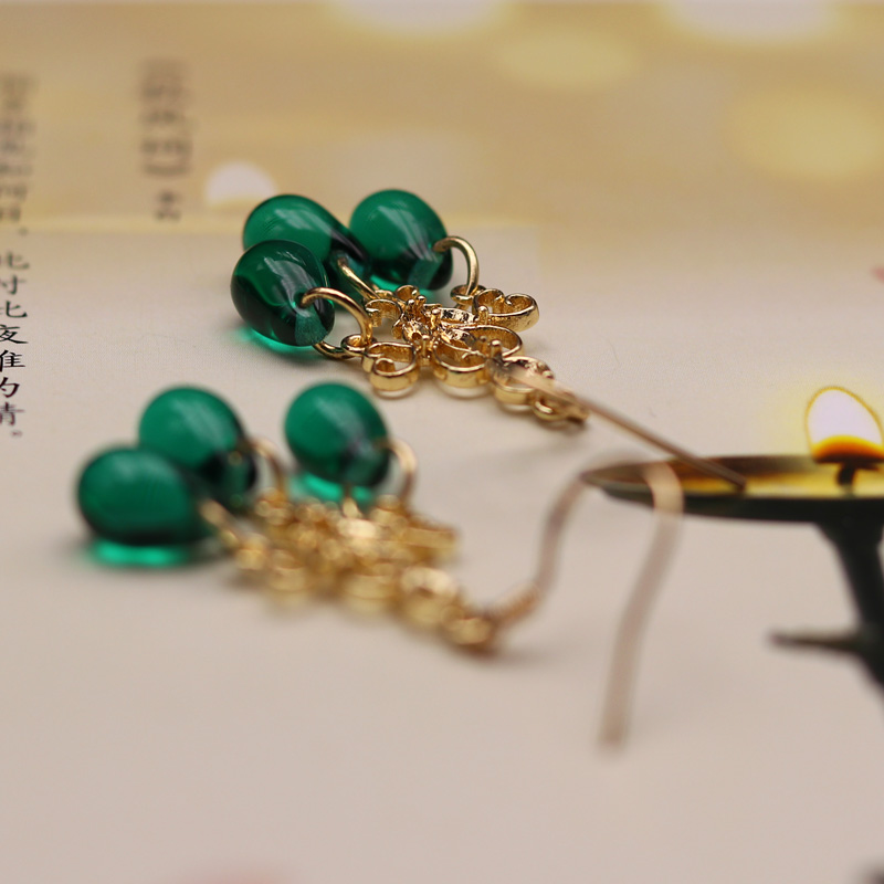 Peacock green water drop earrings glass Chinese style antique earrings temperament graceful classical earrings Hanfu accessories ear clips