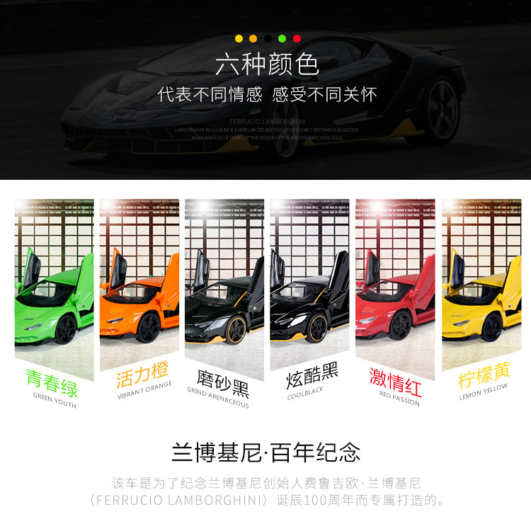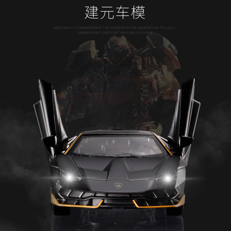 Jianyuan Lamborghini sports car alloy car sound and light effect pull back children's toy car simulation door open car model