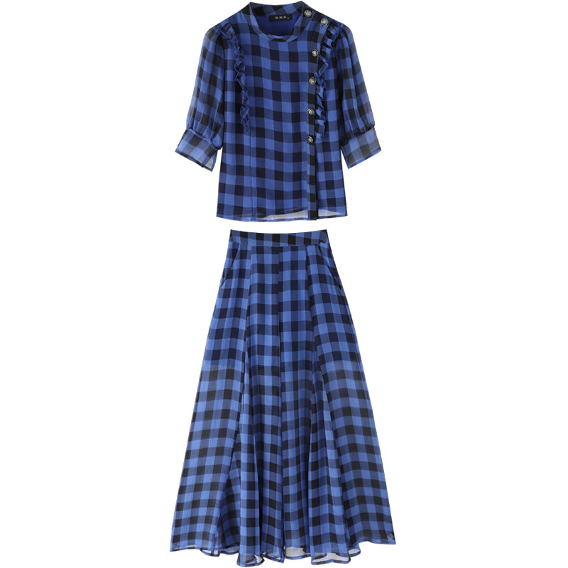 Chiffon two-piece suit fashion plaid 2023 new autumn and winter women's clothing Yujie light cooked Hong Kong style wide-leg pants suit