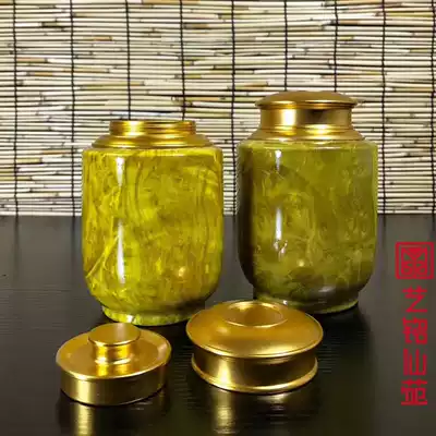 Gold camphor copper lid tea jar Solid wood tea bucket Rice bucket sealed jar Storage jar Tea jar Tea bucket sealed tea jar