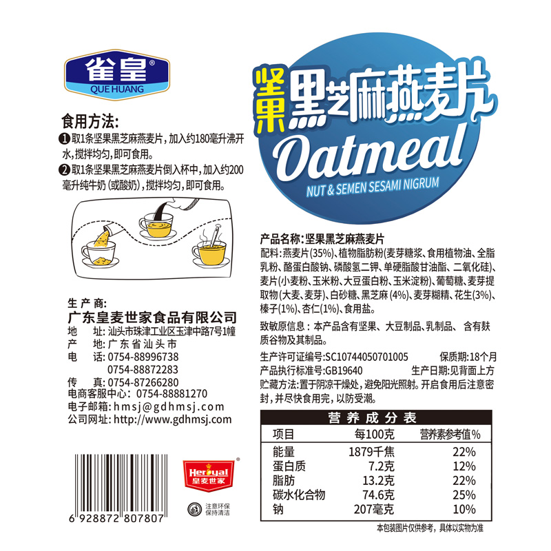 Huangmaishijia Nut Black Sesame Oatmeal Instant Cereal Oatmeal Breakfast Brew Nutrition Small Bag 350g