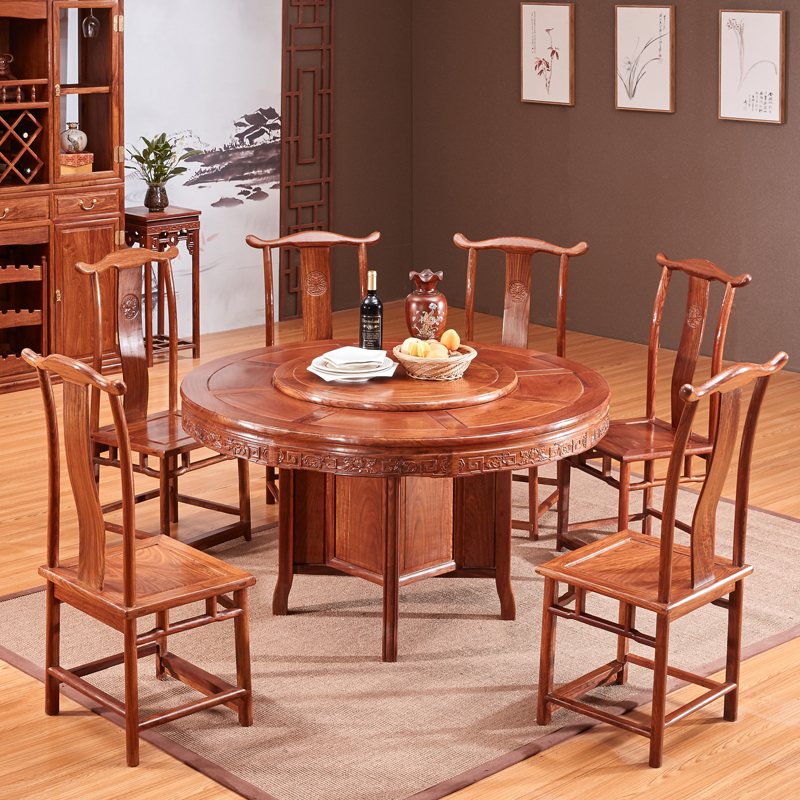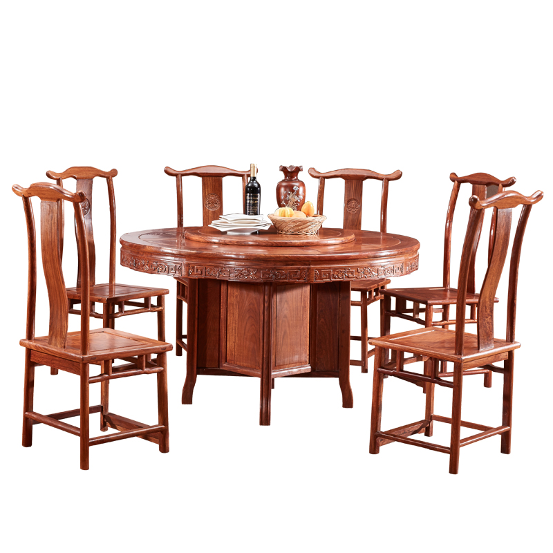Chinese red wood dining table solid wood furniture round dining table and chairs composition Hedgehog Purple Sandalwood Table Africa Flower Pear Wood Round Table