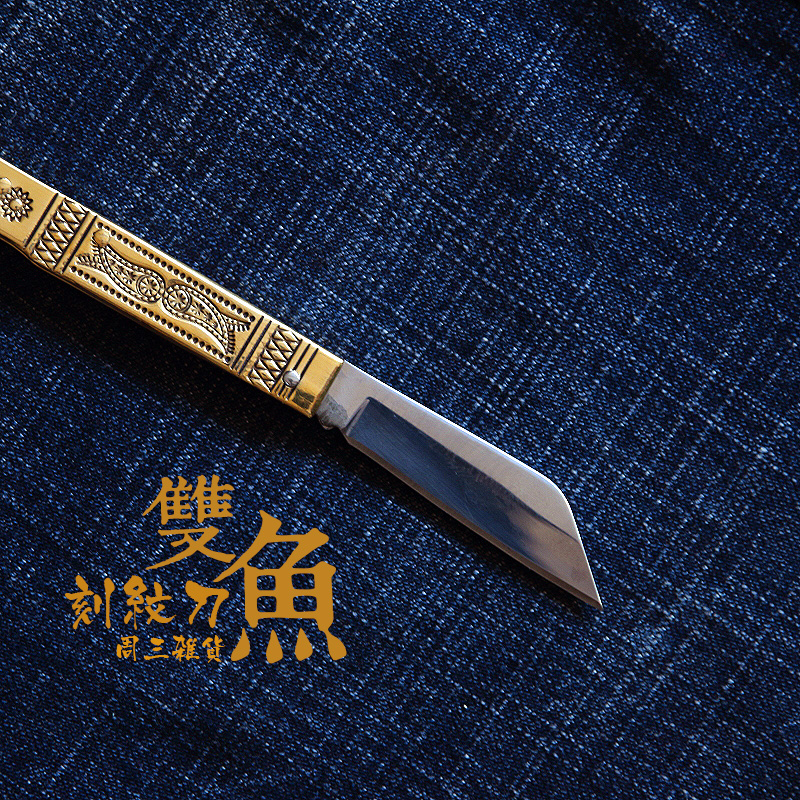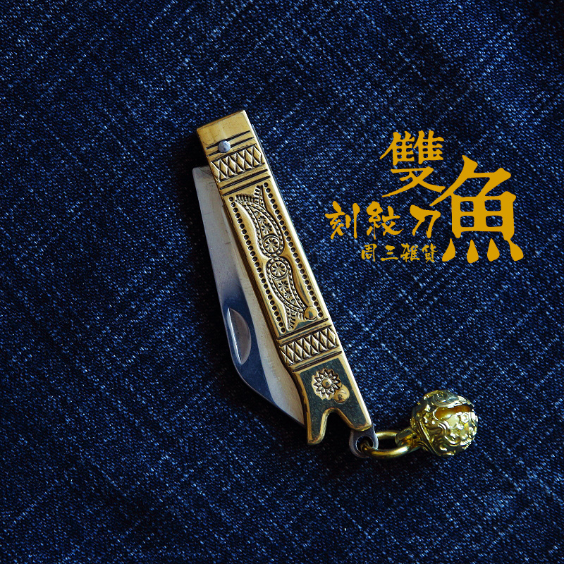 Double Fish Lettering Knife Bronze Handle Folding Cut Paper Knife Water Fruit Knife Small Knife Small Knife Son Portable Demolition Letter Knife Copper handle Carved Knife