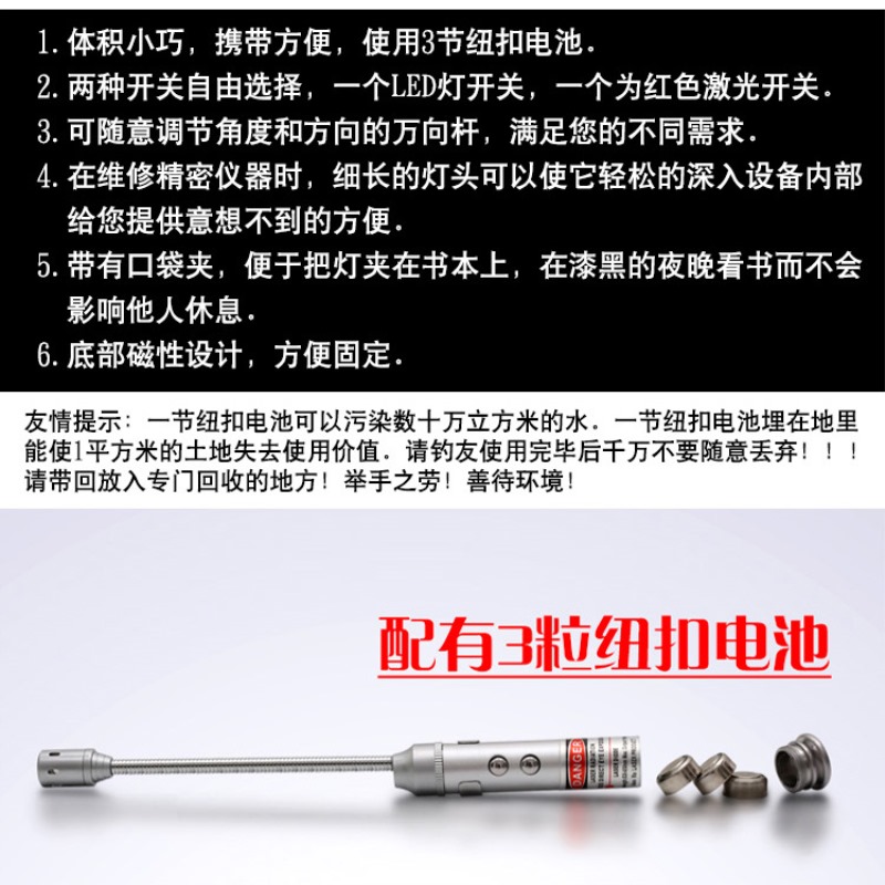 Fishing bait hose rubbing lamp night fishing bait plate pull bait lamp magnet red laser book clip lamp button battery