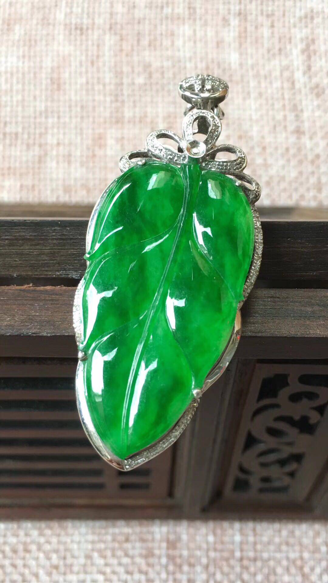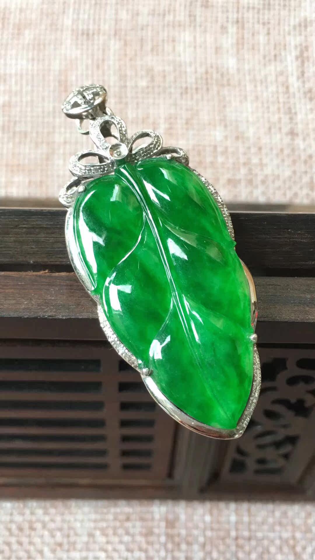 Minke Emerald Jade Ware 18K Gold Inlaid Ice Yang Green Full Green Leaves Pendant Female Natural A Goods Emerald Belt Certificate