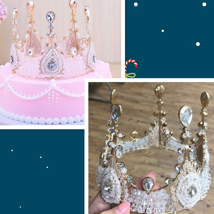 Cake birthday decoration decoration baking decoration accessories pure handmade retro crown decoration queen lace big crown