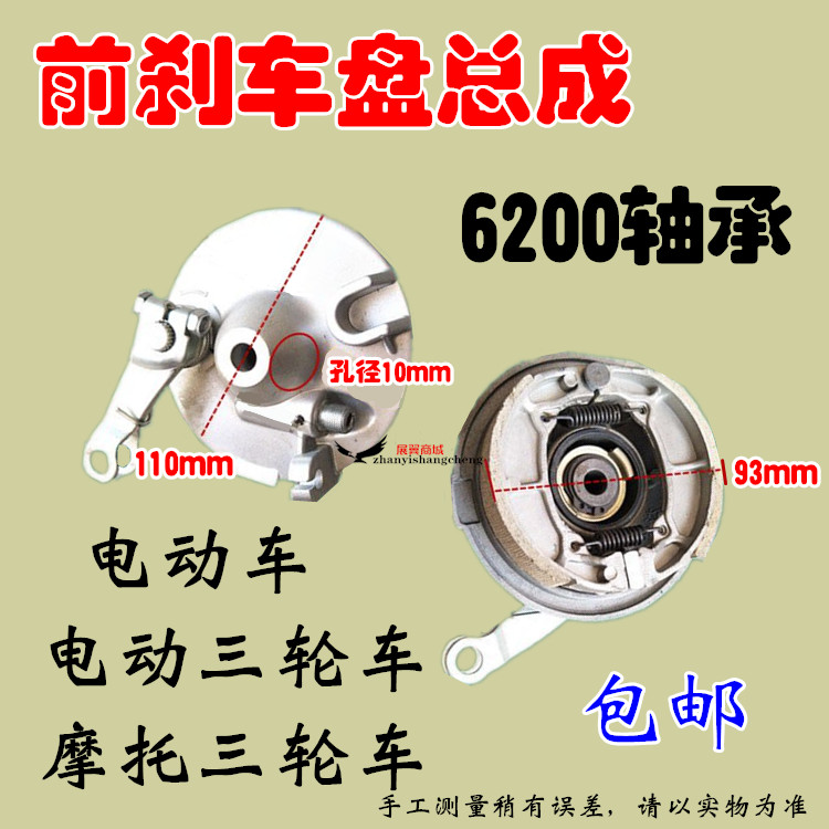 Motor tricycle electric tricycle front drum brake disc brake cover 6201 bearing hub brake disc hub assembly