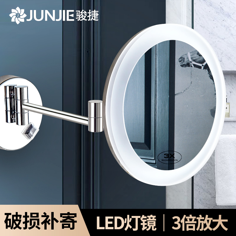 Frameless LED makeup mirror with light mirror Folding telescopic single-sided mirror bathroom wall hanging magnifying beauty mirror